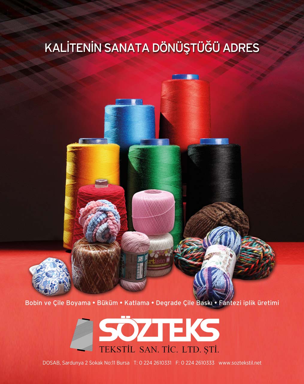 Tel : +90.224 261 03 30 - 31 Fax : + 90.224 261 03 33 www.soztekstil.net e-mail: info@sozteks.com.tr